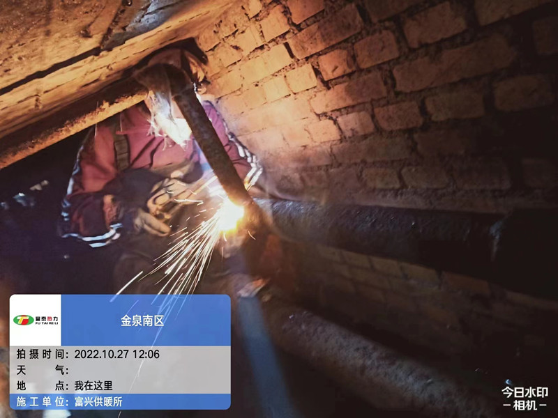 10月13日下午,富興供暖所員工發(fā)現(xiàn)萬(wàn)嘉康城小區(qū)熱力站失水嚴(yán)重,判斷是供熱管網(wǎng)跑水所致,仔細(xì)排查后發(fā)現(xiàn),是小區(qū)商業(yè)樓地溝內(nèi)一根DN32抽頭管道因腐蝕斷裂導(dǎo)致跑水,直接影響小區(qū)內(nèi)10棟樓,約5萬(wàn)平米的供熱,站長(zhǎng)成俊兵帶領(lǐng)搶修人員帶上工具穿好防護(hù)服迅速趕往現(xiàn)場(chǎng)搶修。在進(jìn)入地溝后發(fā)現(xiàn)入戶閥門因常年浸泡在污水中銹蝕嚴(yán)重已無(wú)法完全關(guān)閉,于是馬上調(diào)整搶修方案,先更換閥門,再處理漏水點(diǎn),經(jīng)過(guò)十幾個(gè)小時(shí)的搶修,于14號(hào)中午12點(diǎn)更換、焊接完畢,堵住了漏點(diǎn),恢復(fù)供熱。